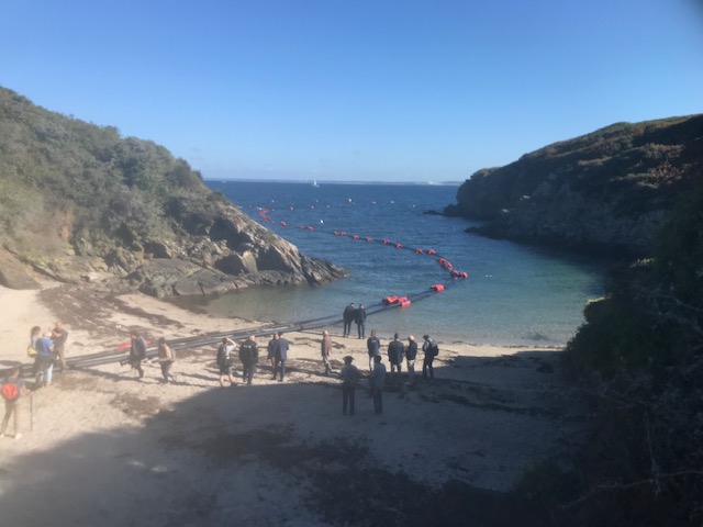 Ce mercedi, Fabrice Loher, Président de Lorient agglomération, Baptiste Rolland Sous Préfet de Lorient et Dominique Yvon, le Maire de Groix se sont rendus à Port- Mélin pour découvrir l'unité de dessalement installée pour garantir la continuité de la production d'eau potable sur l'île. Ainsi, près de 500m3/jour sont dessalés et renvoyés vers le barrage; ce qui représente à peine la moitié de la consommation journalière en été. Le Président de l'agglo s'est félicité de la rapidité de la mise en ouevre de cette unité qui coûte plus de 800 000€ (sans compter le fonctionnement)aux contribuables du pays de Lorient et a tenu à rappeller à tous la nécesssité de ne pas gaspiller l'eau.