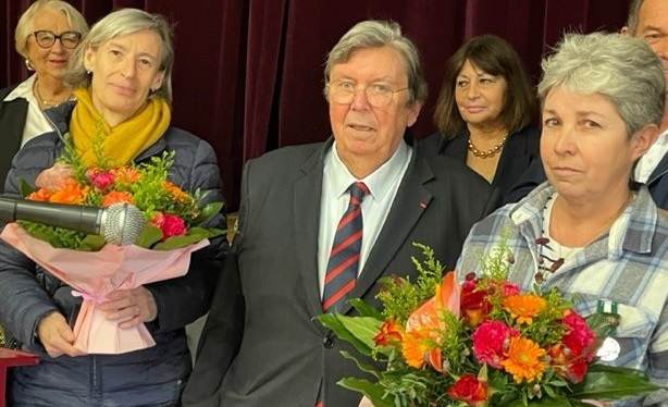 Au terme de cette cérémonie, Mme la Sous-Préfete a remis, au nom de M. le Préfet du Morbihan, deux médailles de vermeille (30 années de travail dans la commune) à Laurence Gourronc qui excerce au pole enfance et à l'école de la Trinité en temps qu'atsem et à Sylvie Guillaume en tant qu'aide soignante à l'Ephad de Groix