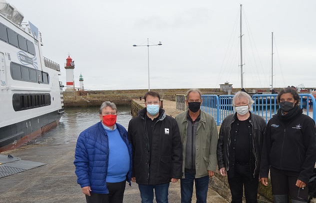 Dominique Yvon, le Maire recevait le Président de Région qui visitait les travaux de l'abri passagers/capitainerie sur le môle central financé à part égale par la Région et la commune.