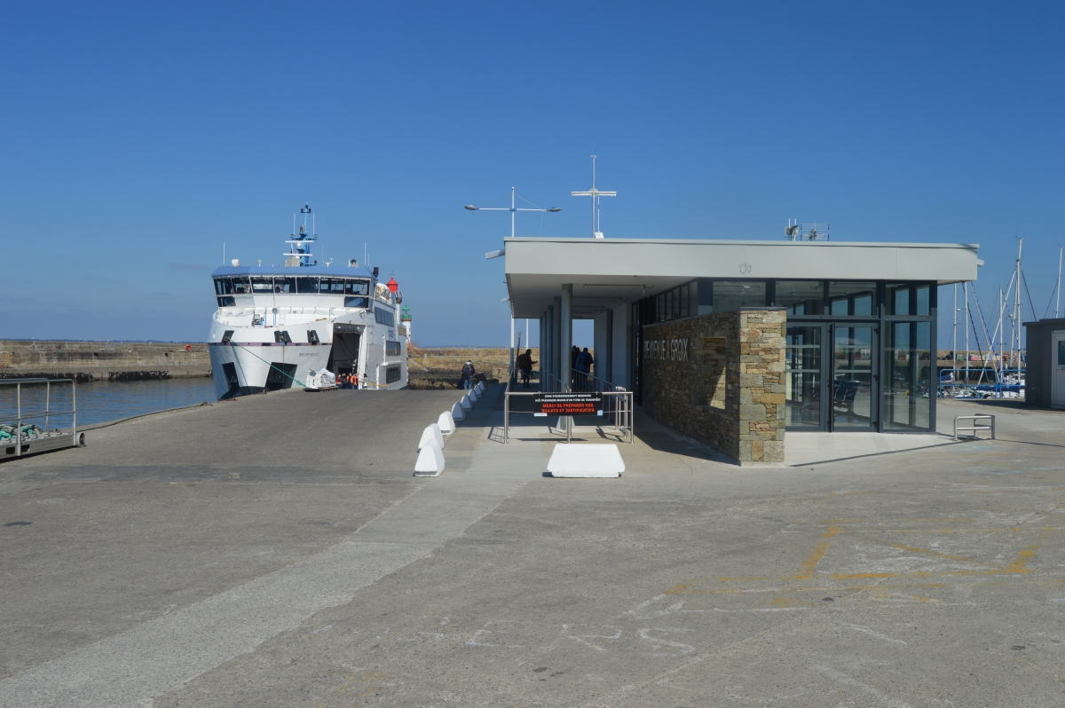Créé par l'architecte Christophe Dromery, il aura falu près de deux années pour que le projet aboutisse. Une salle d'attente de 40m² pour les usagers de la liaison maritime et une capitainerie pour accueillir les plaisanciers. Une touche Groisillonne a été apportée avec le superbe mur de schiste en pierres de Groix. le Président de Région devrait inaugurer ce bâtiment mi Avril