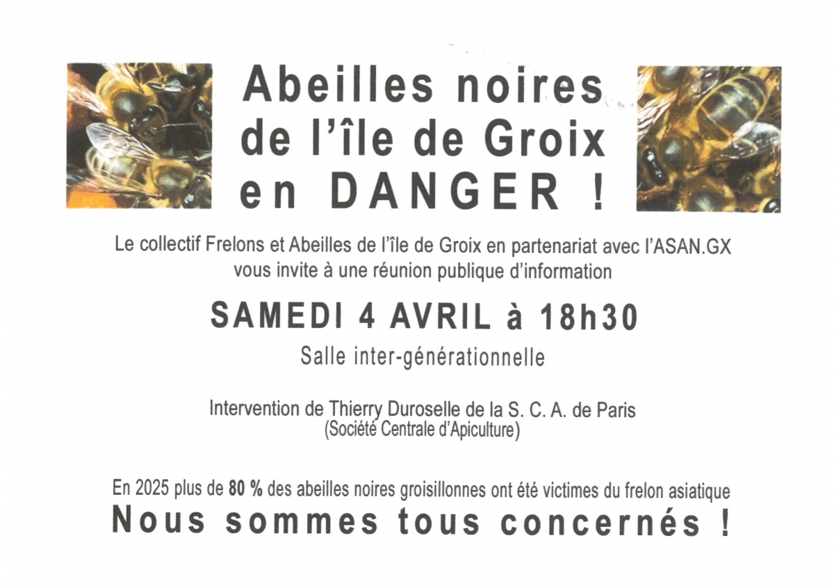 Venez participer à la réunion d'information organisée par le collectif Frelons et Abeilles de l'île de Groix avec l'ASAN.GX