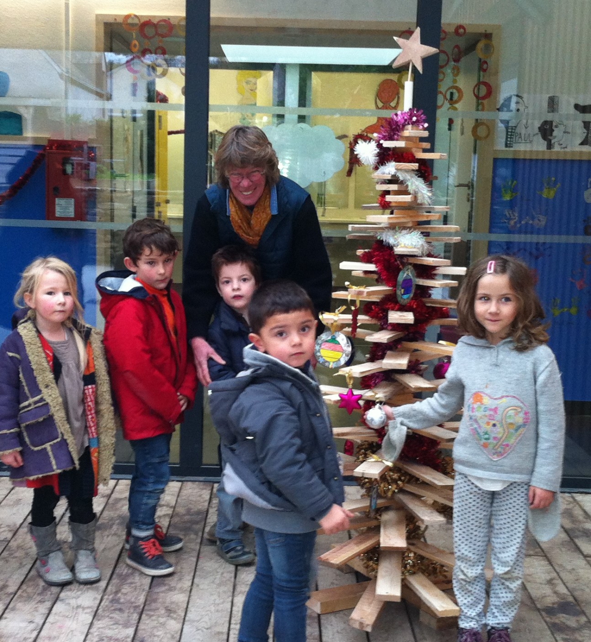 Annie a offert au Pôle Enfance un drôle de cadeau : " C'est un sapin de Noël original entièrement fait de palettes ! Non seulement ça évite d'abattre un arbre, mais surtout ça montre que l'on peut réutiliser toutes ces palettes qui partent dans les bennes de la déchetterie", dit-elle.